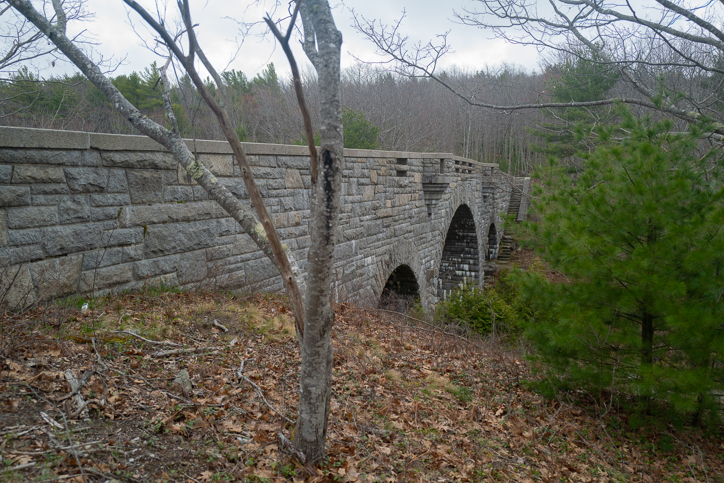 Duck Brook Bridge is one of the most impressive bridges in the carriage road system. It’s a graceful bridge, with three arches over the epynomous Duck Brook. Although structurally, the bridge is actually re-enforced concrete, it’s covered in local granite, making it feel like a part of the landscape rather than a built structure. 1