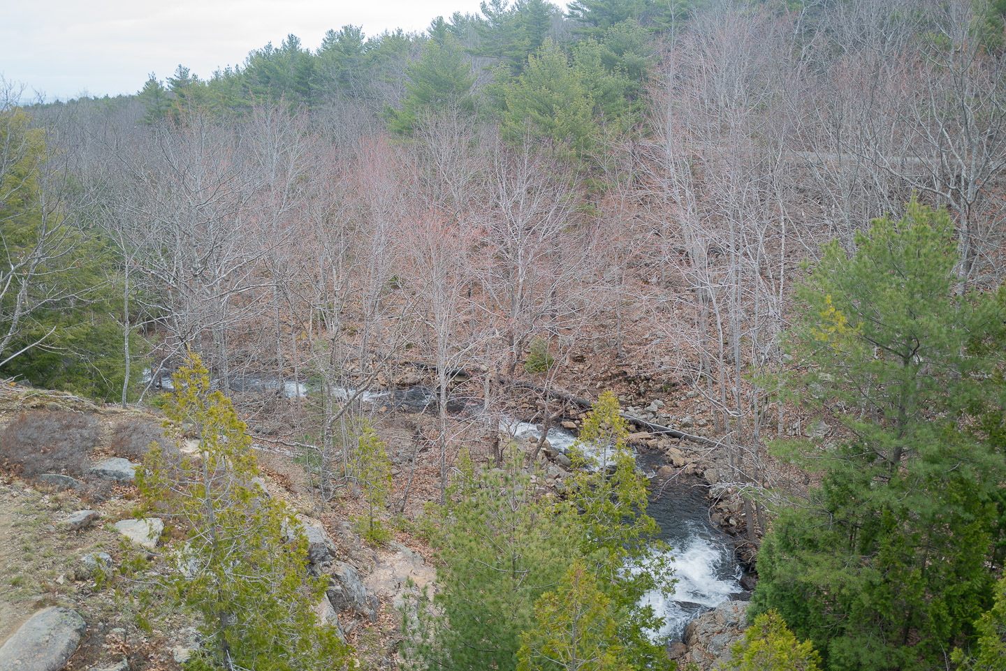 I’m back in Bar Harbor this week, and as could be expected for Bar Harbor in late April, the weather is variable. The past two days have been beautiful, but starting today, the weather taken a turn towards colder and greyer. Before the rain and snow (!!) came, my dad and I did one last walk, around Witch Hole Pond via Duck Brook Bridge.