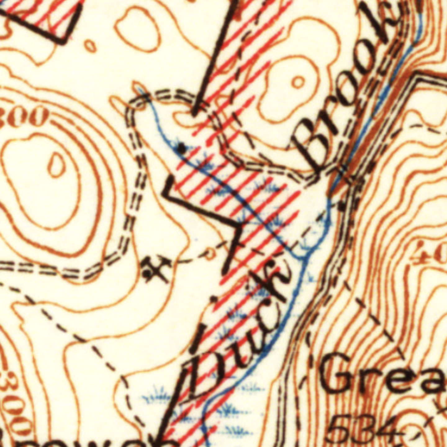 On the other hand, there is a surprisingly good history of the carriage trails at the Library of Conrgess. Here, the author says that granite for the the bridges was “generally obtained from nearby ledges or small quarries.” 2 This is all the author discusses about the source of the stone, but given the timing and location of the quarry, I think it’s pretty plausible that Duck Brook Bridge (and possibly the road bridge as well) was dressed with stone from this quarry.
