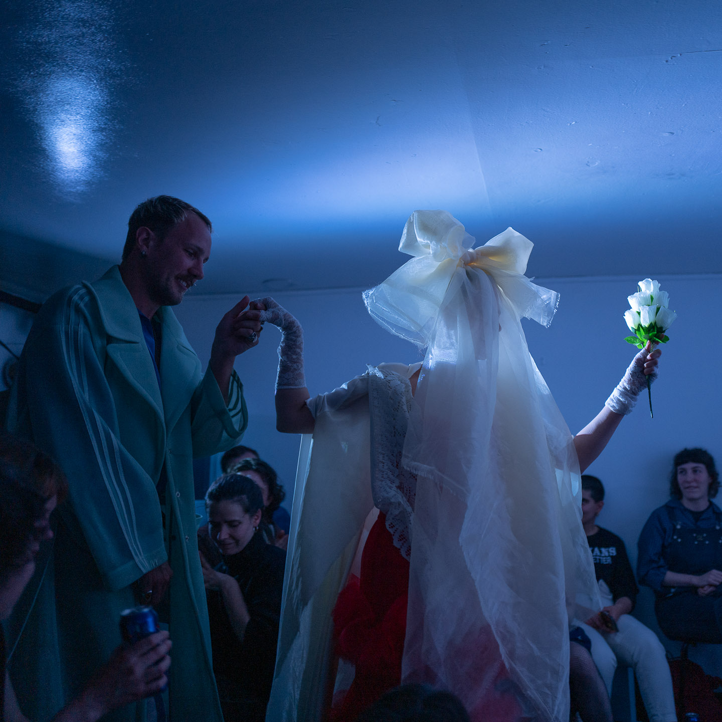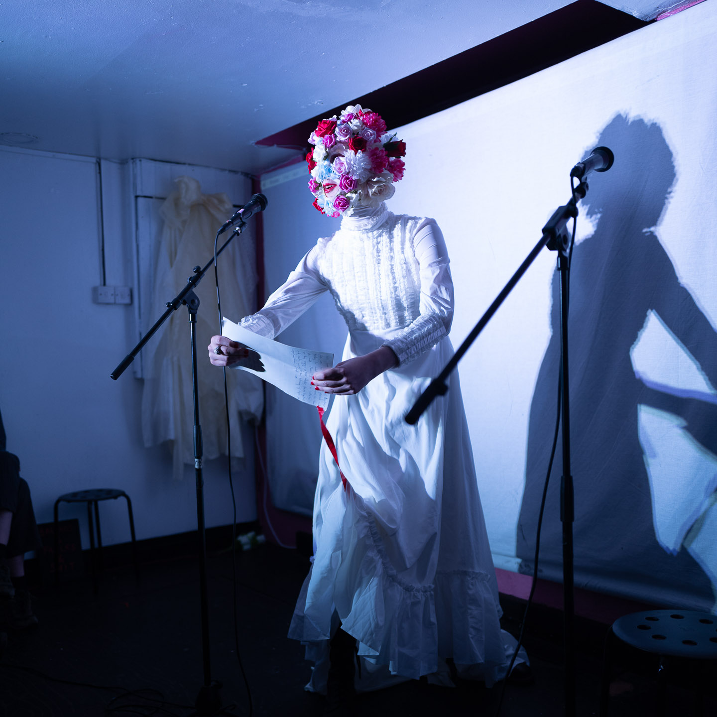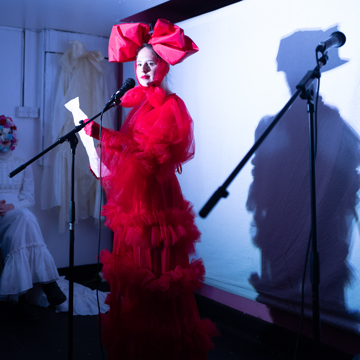 Once the traffic cone had been taken care of, Charlie came up and opened the show. They were stunning in a white dress topped with a floral head.